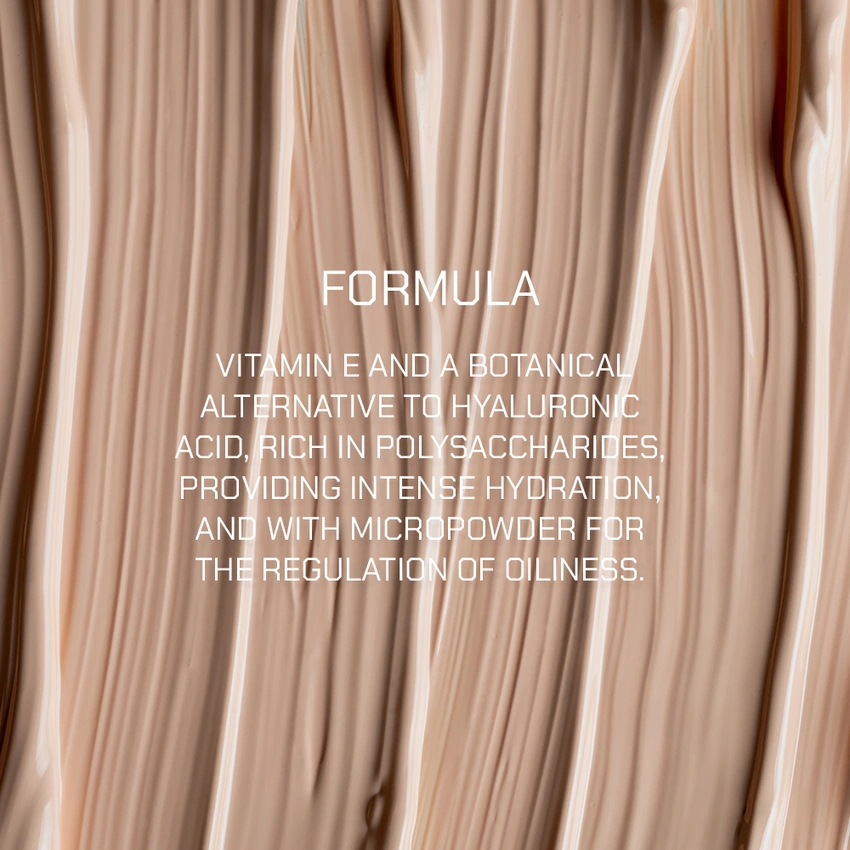 Formulated with Vitamin E and a botanical alternative to hyaluronic acid, rich in polysaccharides, providing intense hydration, and with micropowder for the regulation of oiliness.